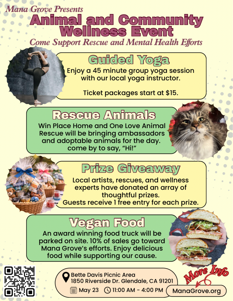 This will be Mana Grove’s first official introduction to the Los Angeles community. This event is a donation-based event, with optional tickets for our wellness space, where Yoga and/or breathwork will take place. All funds collected from tickets will go towards Mana Groves Land Acquisition fund.
